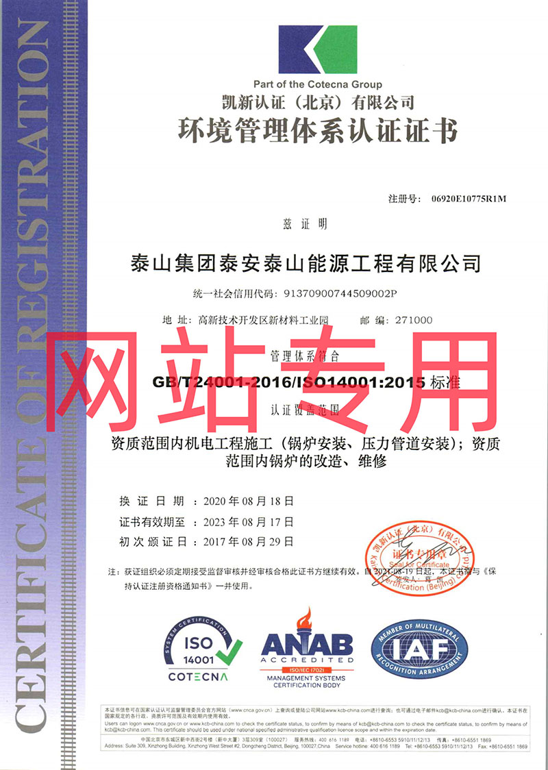 環(huán)境管理體系認(rèn)證證書